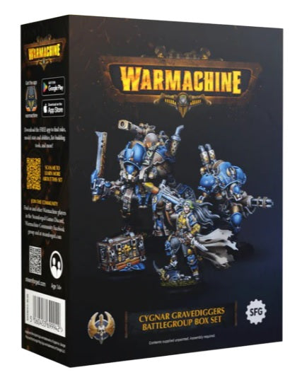 This Battlegroup Box is a great way to get started with Cygnar Gravdiggers, including a warcaster (leader) and two powerful warjacks. Begin with lower-point games, then combine with other sets to build a formidable Gravediggers Army. Captain Cynthia Rosko - Daughter of legendary Cygnaran warcaster, Allister Caine - lives up to her gun mage roots. Always moving, she peels back enemy armor to reveal their weakness, before she and the Patriot strike at range. Practical and brutally efficient, the Valiant's loadout can adapt to any battlefield, even mid-combat. Under her daring leadership, Cynthia's force can block out the very sky under a hail of firepower. What's in the box? Captain Cynthia 'Cyn' Rosko (Warcaster), Valiant (Heavy Warjack), Patriot (Light Warjack), Heavy Weapons Crate (Heavy Airdrop)