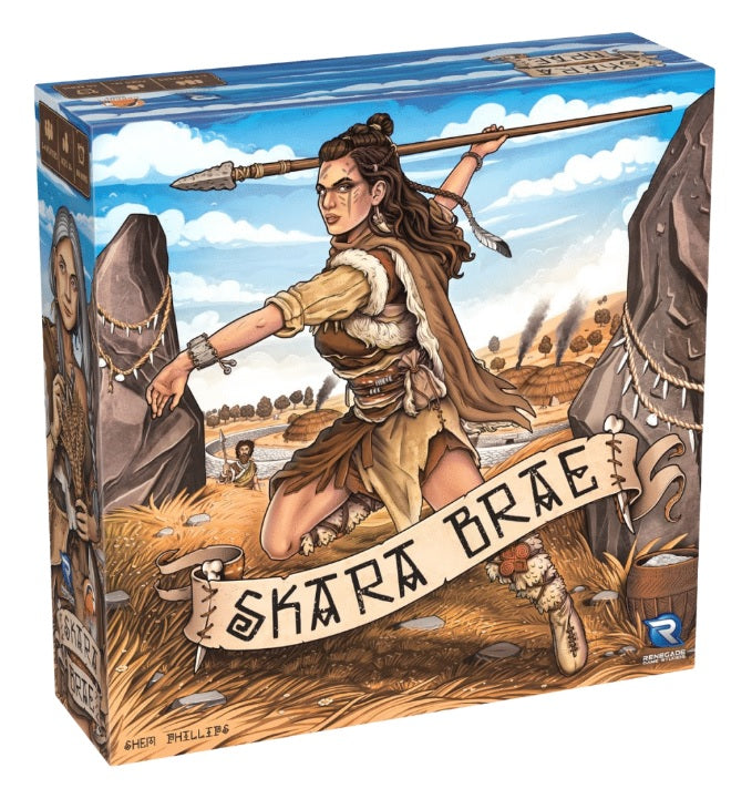 Around five thousand years ago, a resilient group of farmers and hunters built a thriving community on the Orkney Islands of Northern Scotland. Rather than discarding their empty shells, broken tools, bones, and other waste, they used them to form large mounds of earth over hundreds of years. Later generations dug into these midden piles to create a series of rooms and tunnels to shelter from the harsh winds and cold winter months.The aim of Skara Brae is to gather various Resources in order to feed, clothe, and shelter the growing number of Settlers. Players take turns drafting Village Cards and using their Workers to Furnish, Cook, Craft, Clean, and Trade. At the end of each Round, players need to provide for their Settlers and will likely create more Midden that needs to be cleaned up. After 4 Rounds, the player with the most Victory Points (VP) wins.