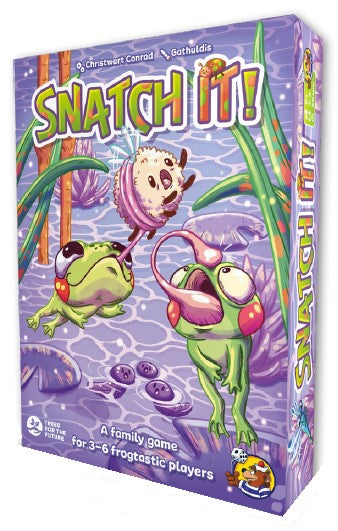 Snatch It! Let`s you experience the joyful weirdness of catching juicy flies for your froggies. But make sure to gobble them up fast before others snatch your food away. This game by Christward Conrad features accessible rule and is a perfect fit for family fun time. Snatch It! is a highly interactive game with enchanting artwork by German artist Gathuldis. For every game sold, one tree is planted by Trees for the Future.