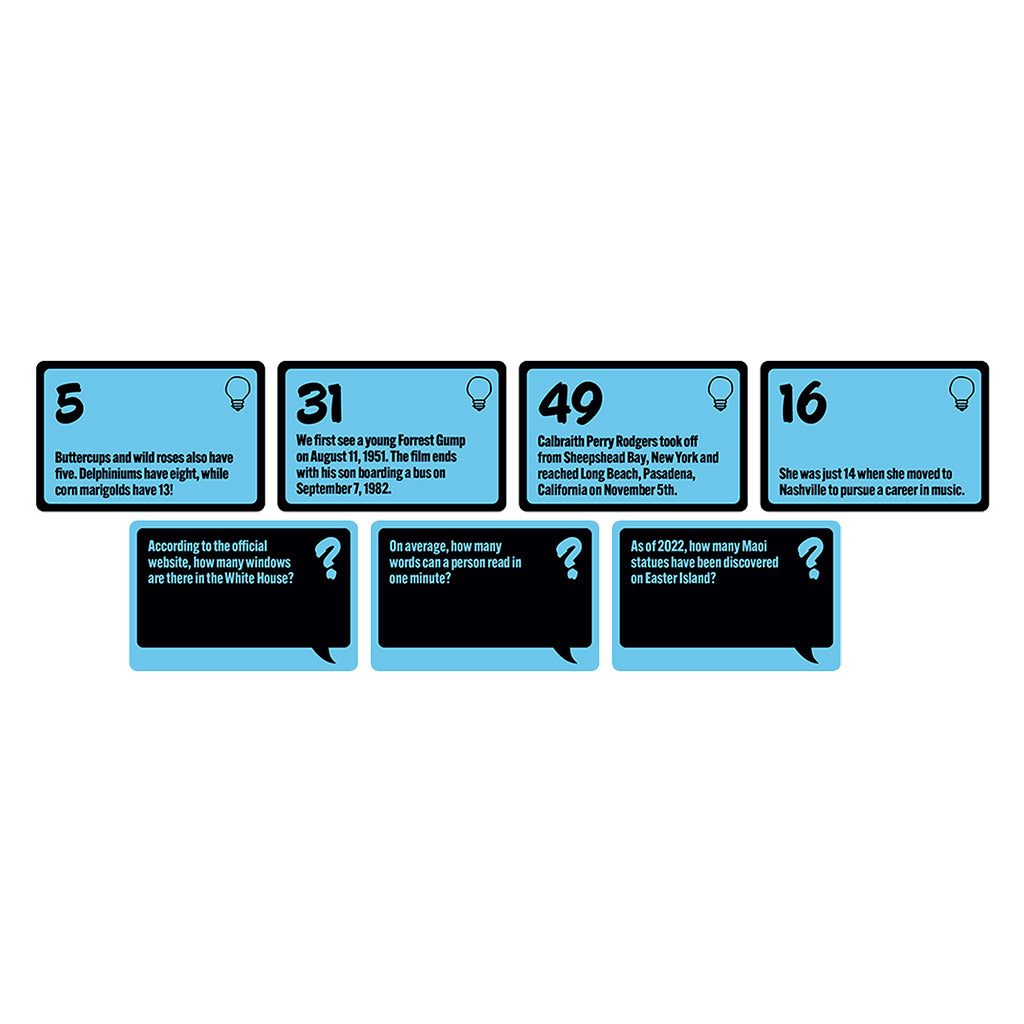 Work together to guess the numbers that answer the quirky questions on the cards and arrange them in ascending order.