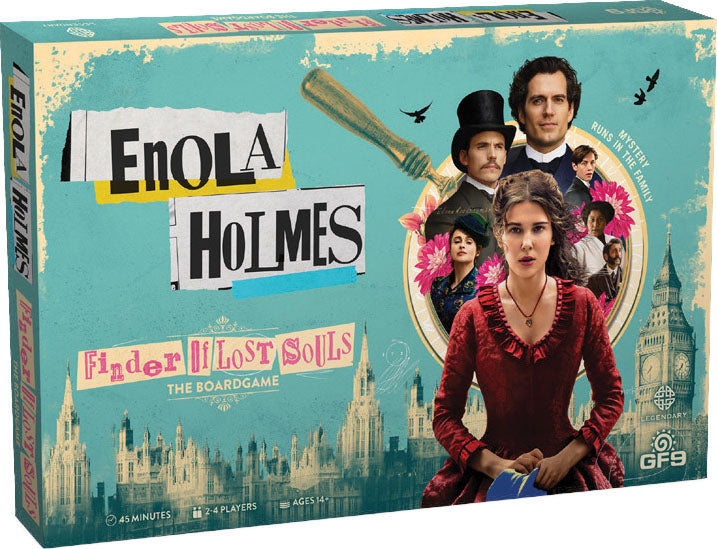 Enola Holmes is an all-against-one cooperative game where the detectives travel around London solving puzzles to gain the clues that will fuel their deductions. One player is the Criminal, hatching a sinister plan to abduct their victim, leaving puzzling clues in their wake. The other players are the Detectives, working together to solve these Puzzles and reveal Clues. If they solve enough Puzzles and use careful Deduction, they can deduce the Crime and stop the Criminal.