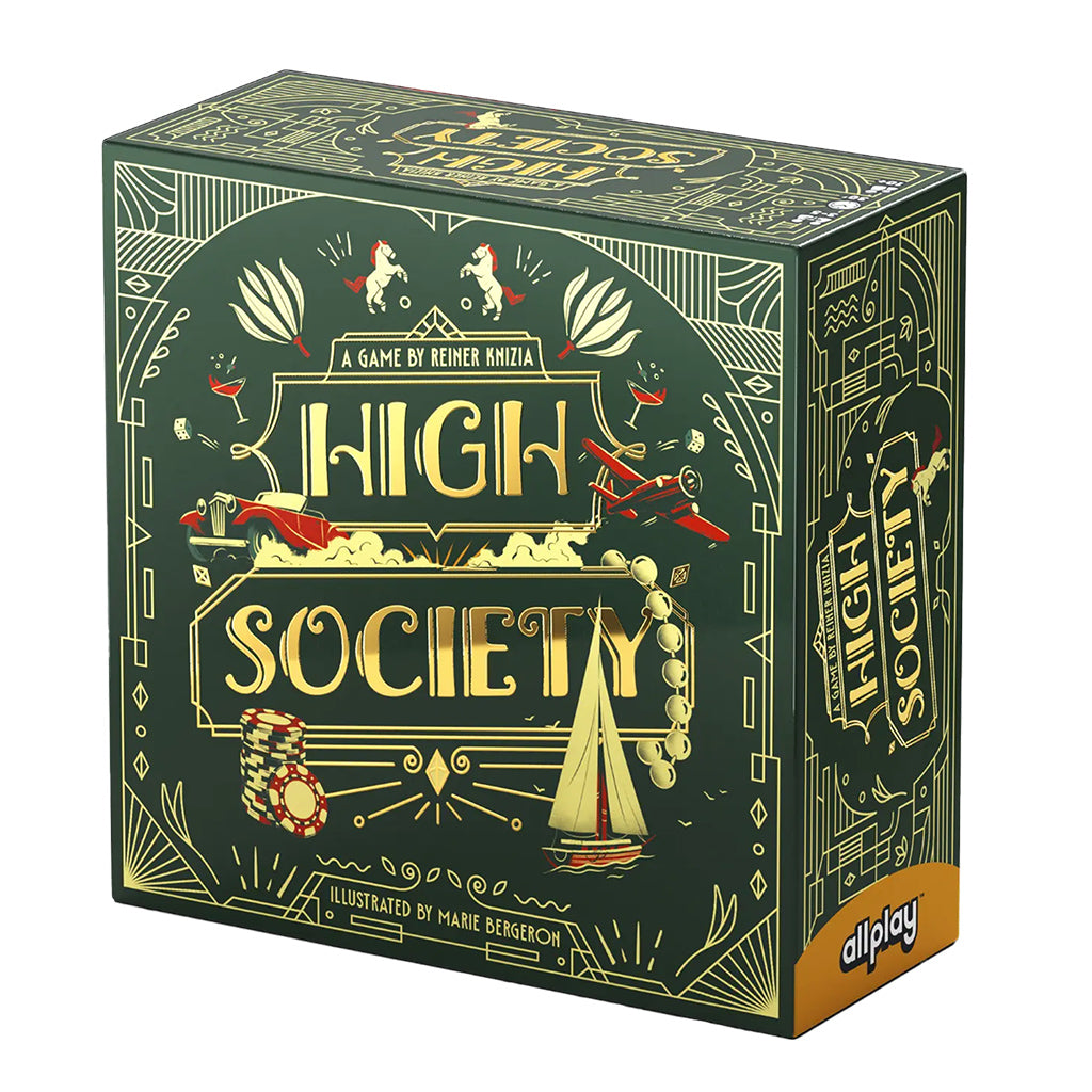 In Reiner Knizia's High Society, players bid against each other to acquire the various trappings of wealth (positive-number and multiplier cards) while avoiding its pitfalls (negative number and divisor cards). While bidding, though, keep an eye on your remaining cash - at the end of the game, even though all those positive-number cards might add up to a win, the player with the least money isn't even considered for victory.