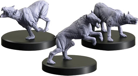 Barghests are spectral hounds that hunt in the night in vicious packs. Often drawn to vile or tragic events, they attack with ferocity, snapping at their prey with phantom fangs.These models are made from durable plastic and include plastic bases.