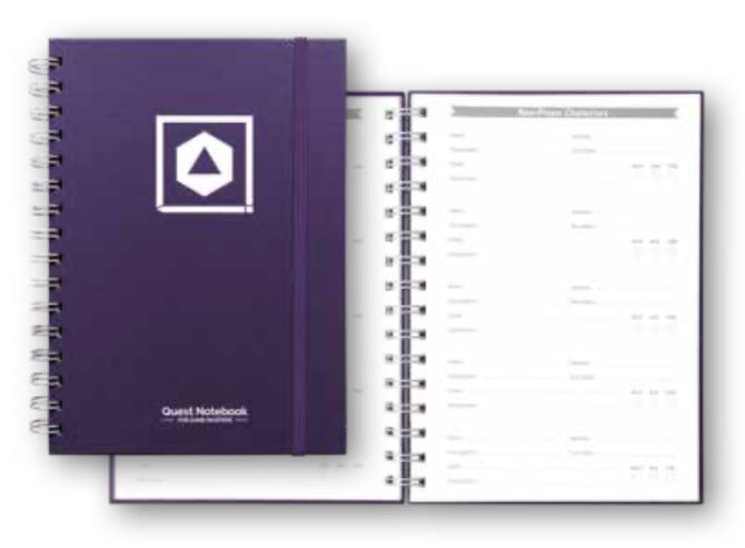 Our Game Master`s Quest Journals are purpose-built to keep track of your campaign notes and handouts. It has everything you need to manage your DnD campaigns without breaking a sweat. Theres space for world building notes, session planning sheets and trackers for NPCs, monsters, magic items, house rules and more! Plus lined, dotted and squared paper, and two sizes of hex grids for planning maps and dungeons. The Game Master`s Quest Notebook has 120 pages of custom RPG notepaper. It is compact, hard-wearing and wire-bound, so it's easy to fold in half and always lies flat on the tabletop. An elastic strap and rear pocket keeps your notes and handouts safe between sessions.