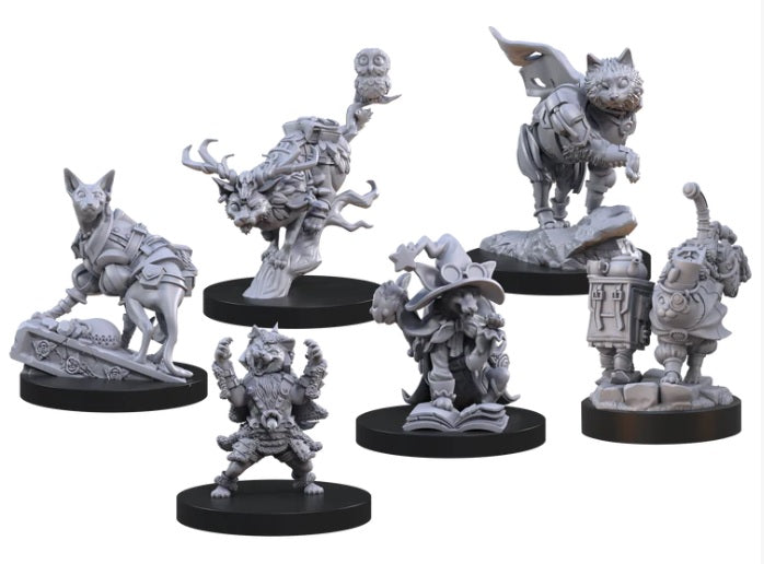 Embark on your next roleplaying adventure as an intelligent canine bursting with character! From a Newfoundland monk to an Australian Shepherd druid, each pup has been lovingly designed to represent a classic fantasy class. Now, the're ready to set sail! Inside this box you'll find six fully assembled, highly detailed miniatures ready to paint or play. These dogs are compatible with all fantasy roleplaying games and can be used as player characters, companions, or familiars. The choice is yours! What's in the box? Annie, the Samoyed Cleric - Copper, the Bloodhound Watcher - Earl, the Chow Chow Bard - Harvard, the Newfoundland Monk - Jojo, the Westie Fighter - Thorn, Australian Shepherd Druid.