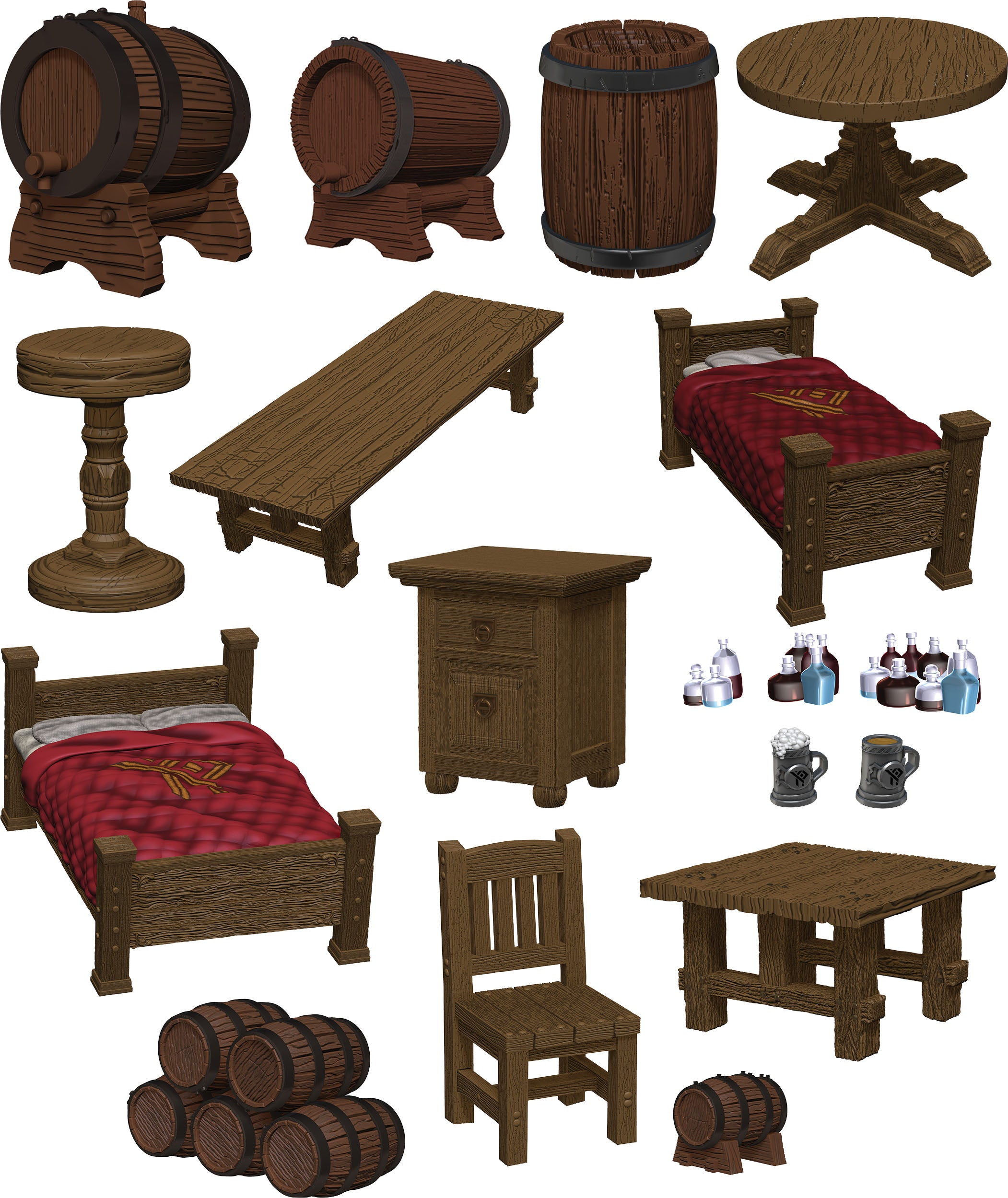 Make sure you have everything you need for a memorable game night at D&D Icons of the Realms: The Yawning Portal Inn! With Beds & Bottles, youll enjoy a variety of tables and chairs, kegs and barrels, and even two styles of beds to help set the scene. Waterdeeps popular gathering place is ready to come to life at your table.This set includes:Single Bed, (1)Double Bed, (1)Nightstands, (2)Round Table, (1)Square Table, (1)Long Table, (1)Chairs, (6)Stools, (6)Barrel on Stand, (1)Barrel Stack, (1)Barrels, (2)Six Ft Keg, (1)Small Keg, (1)Three Bottle Cluster, (1)Five Bottle Cluster, (1)Eight Bottle Cluster, (1)Mugs, (4)Mugs with Foam, (4)Contents subject to changeImages not final